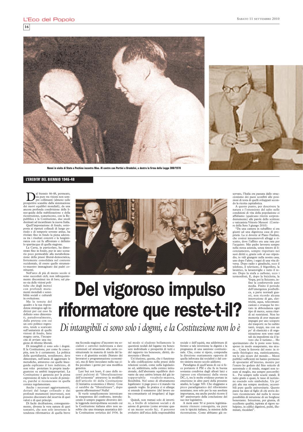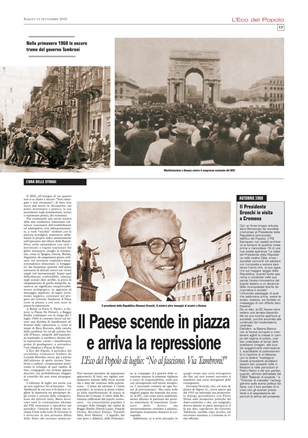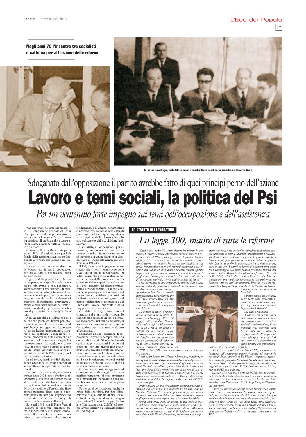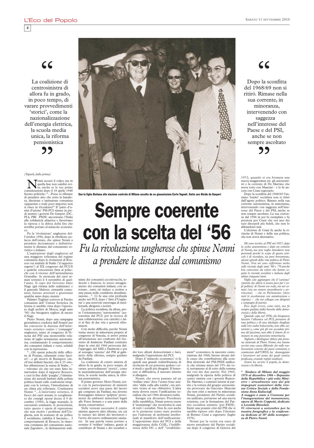 Non ci è stato difficile ricordare che), nel settembre del 2010, L'Eco del Popolo (grazie alla generosa disponibilità del quotidiano La Cronaca, del suo Direttore Mario Silla, del prezioso Fabrizio Loffi) gli aveva dedicato un'edizione monografica. In cui la rivisitazione del profilo biografico, nella sua dimensione nazionale, si accompagnava all'approfondimento dei punti di contatto con la realtà cremonese.