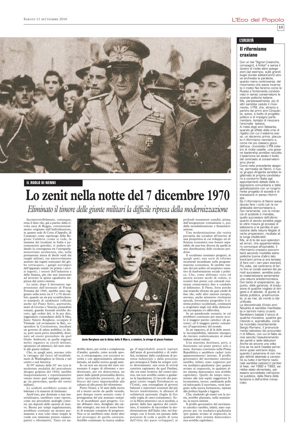 Osserva il direttore della consorella testata storica prampoliniana, Mauro Del Bue, “Nenni protagonista della svolta autonomista del 1956, Nenni che volle l'unificazione con Saragat nel 1966 per creare una grande socialdemocrazia italiana, Nenni che volle il centro-sinistra e il miglior governo riformatore della storia, soprattutto quello presieduto da Fanfani, Nenni presidente del Psi con Craxi segretario è quello che abbiamo conosciuto, apprezzato e amato”.