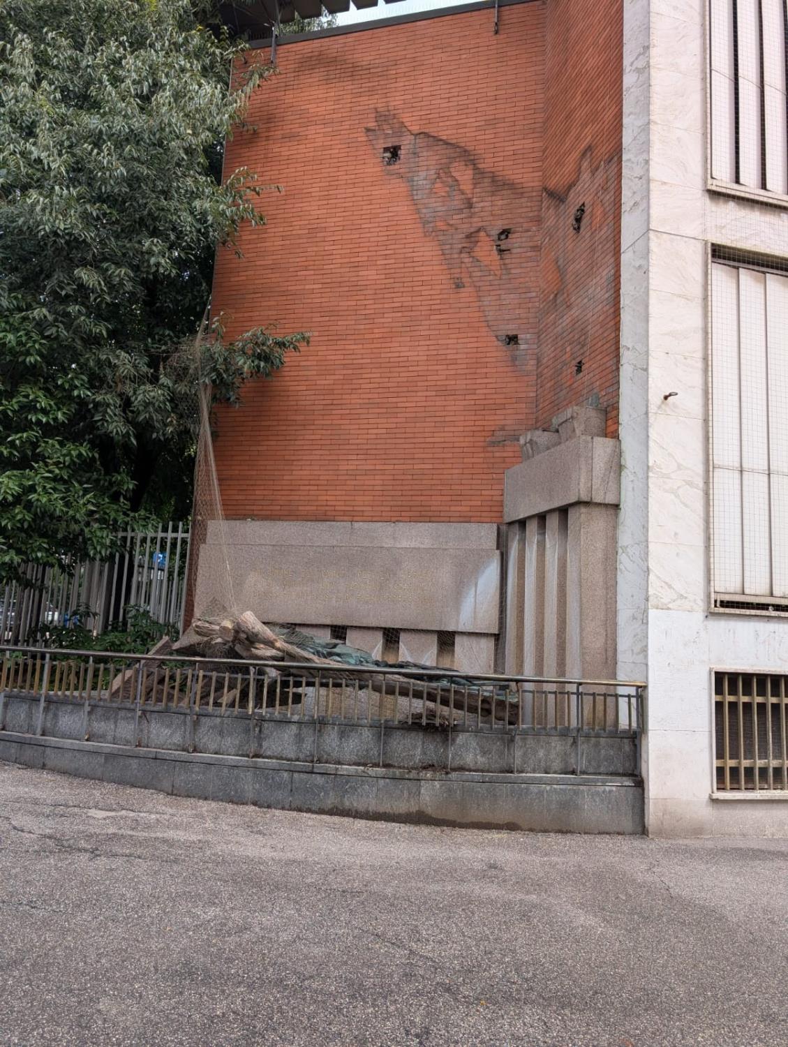 Nel settembre scorso, la iconica opera di Ruffini di celebrazione dei Liberatori, posata ad opera del committente della cittadella degli studi di via Palestro crollò è crollata (per incuria). Non si è frantumata nella caduta solo perchè nel 2007 in occasione della collocazione del busto di Bissolati al liceo scientifico la Provincia si decise a proteggerla (dai piccioni e dai vandali) con una rete. Che l'ha in parte salvata. Due settimane fa, in occasione di una testimonianza partigiana al Cimitero, ho parlato con Pizzetti e con il presidente della Provincia. Che mi ha rassicurato: il monumento tornerà a posto per il prossimo 25 aprile