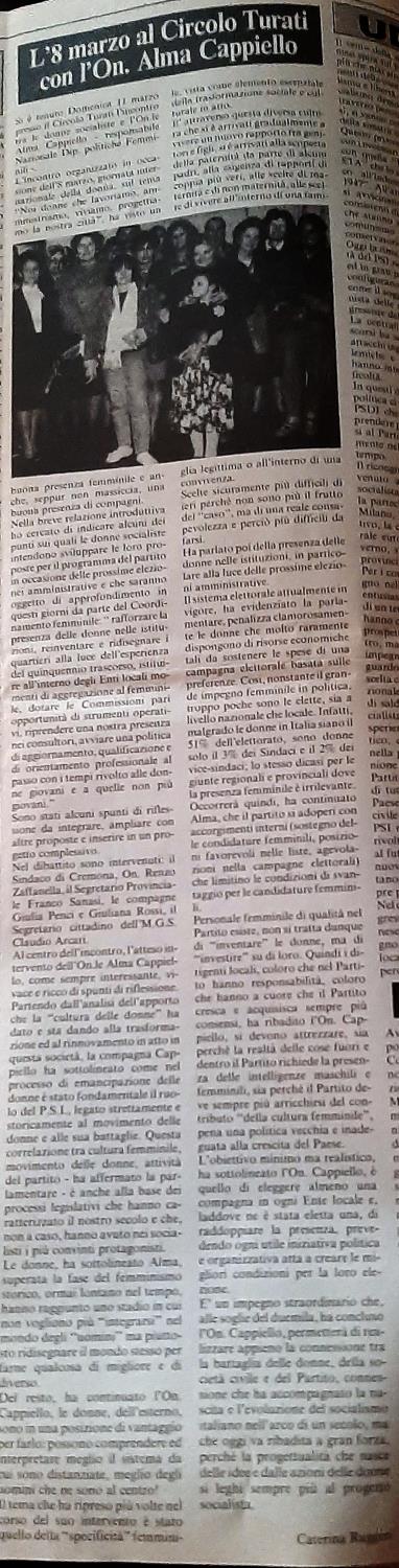 Crediamo di far cosa gradita a Cate, corredare la nostra presentazione ed il profilo tracciato dalla compagna ed amica Rita Balsamo con i ritaglia degli articoli de L'Eco del Popolo che mettono a fuoco quelle battaglie.