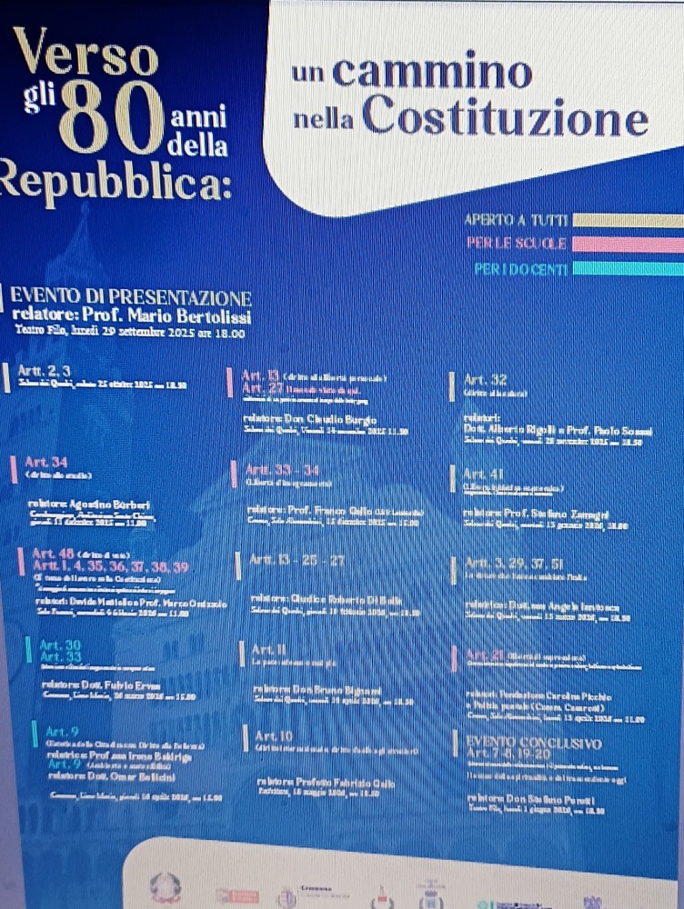 Verso gli 80 anni della Repubblica: un cammino nella Costituzione” Presentazione del ciclo di incontri convegnistici dedicati alla Costituzione Italiana 29 settembre 2025 - 1 giugno 2026
