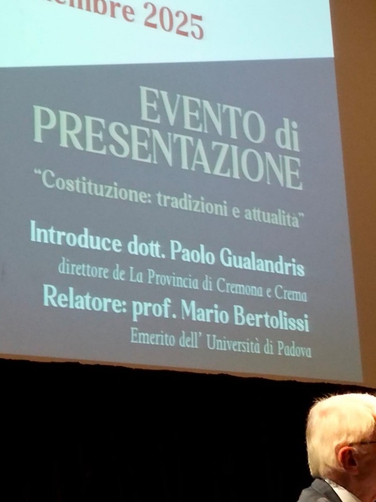Si è svolto lunedì 29 settembre, alle ore 18.00, presso il Teatro Filo di Cremona, l'evento di presentazione del ciclo di incontri dal titolo “Verso gli 80 anni della Repubblica: un cammino nella Costituzione”, iniziativa di rilevante valore culturale e civico promossa ed organizzata dalla Prefettura di Cremona, con la preziosa e attiva collaborazione della Provincia di Cremona, dei Comuni di Cremona, Crema e Casalmaggiore, della Camera di Commercio Cremona Mantova Pavia e dell'Associazione Industriali di Cremona.