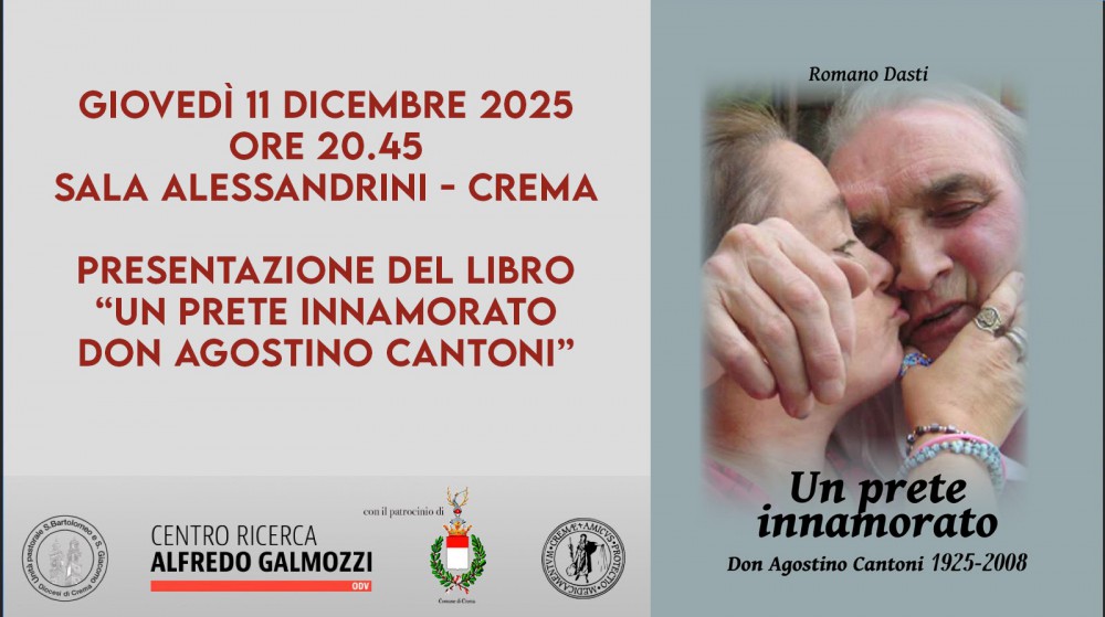 Folgorato dalle novità del Concilio Vaticano II, ha vissuto con intensità la stagione postconciliare, con le sue aperture e le sue contraddizioni, i suoi entusiasmi e le sue lacerazioni. Nel 1970 diventa parroco di San Giacomo. Dà forma ad una “comunità” che ha come carta d'identità il modello tracciato negli Atti degli Apostoli: ascolto della Parola, eucarestia, servizio agli ultimi, comunione fraterna. Rimarrà alla guida della sua comunità per 31 anni, rigorosamente fedele al programma iniziale. Romano Dasti ricostruisce in un volume promosso dall'Unità pastorale San Giacomo – San Bartolomeo e edito dal Centro Ricerca A. Galmozzi il ricchissimo percorso biografico di don Agostino Cantoni. Durante la serata verranno proiettati alcuni filmati inediti.