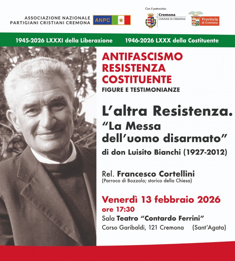 A sostegno dell'importante iniziativa conviviale, allestita dall'impegno congiunto dell'Associazione Nazionale Partigiani Cristiani, del Comune capoluogo e della Provincia, riprendiamo la locandina e ci permettiamo, traendo da alcuni editing del quotidiano La Provincia (a firma Giuseppe Bruschi e Barbara Caffi), riprendere i tratti salienti della ricca personalità, umana, civile, sociale, presbiteriale del protagonista di questo panel. Lodevolmente riproposto alla vigilia della ricorrenza della Liberazione.