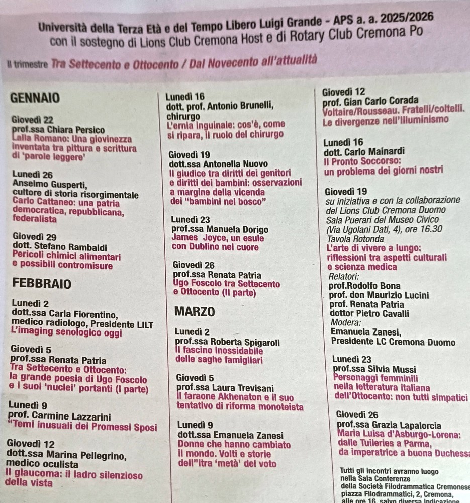 Presentazione del Programma e Calendario degli incontri di iniziativa culturale 2026, organizzati dall'Associazione Nazionale Partigiani Cristiani di Cremona.
