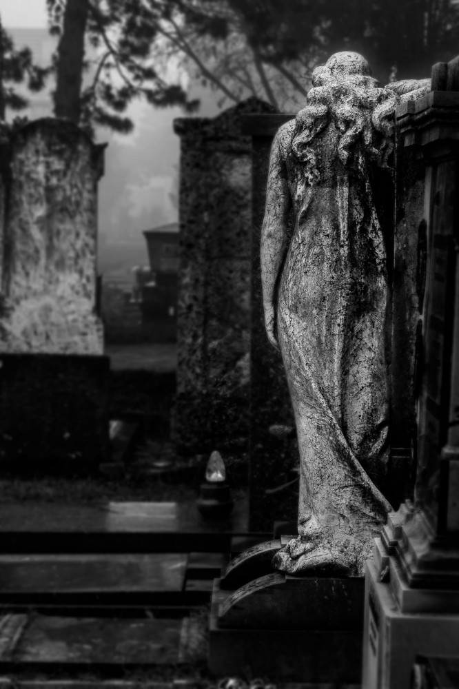 Nel silenzio autunnale, la nebbia ammanta il Cimitero Monumentale, dove le foglie cadono lente come il tempo che passa, prende forma questa raccolta fotografica in bianco e nero, con tocchi di colore che rompono la quiete e catturano l'anima. Le immagini raccontano le storie mute delle tombe storiche, molte delle quali da tempo abbandonate, i cui nomi scolpiti stanno sbiadendo insieme al ricordo. Le sculture – angeli, volti, mani, drappeggi – emergono dalla nebbia del tempo come presenze sospese tra memoria e oblio.