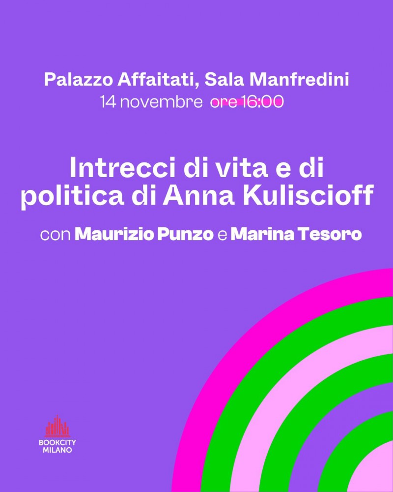 presentazione a Bookcity Cremona il 14 novembre prossimo, alle ore 16.00, nella Sala Manfredini di palazzo Affaitati, del volume di Maurizio Punzo, Anna Kuliscioff. Intrecci di vita e di politica, Milano, Mimesis, 2025. Saranno presenti l'autore e Marina Tesoro, dell'Università di Pavia.