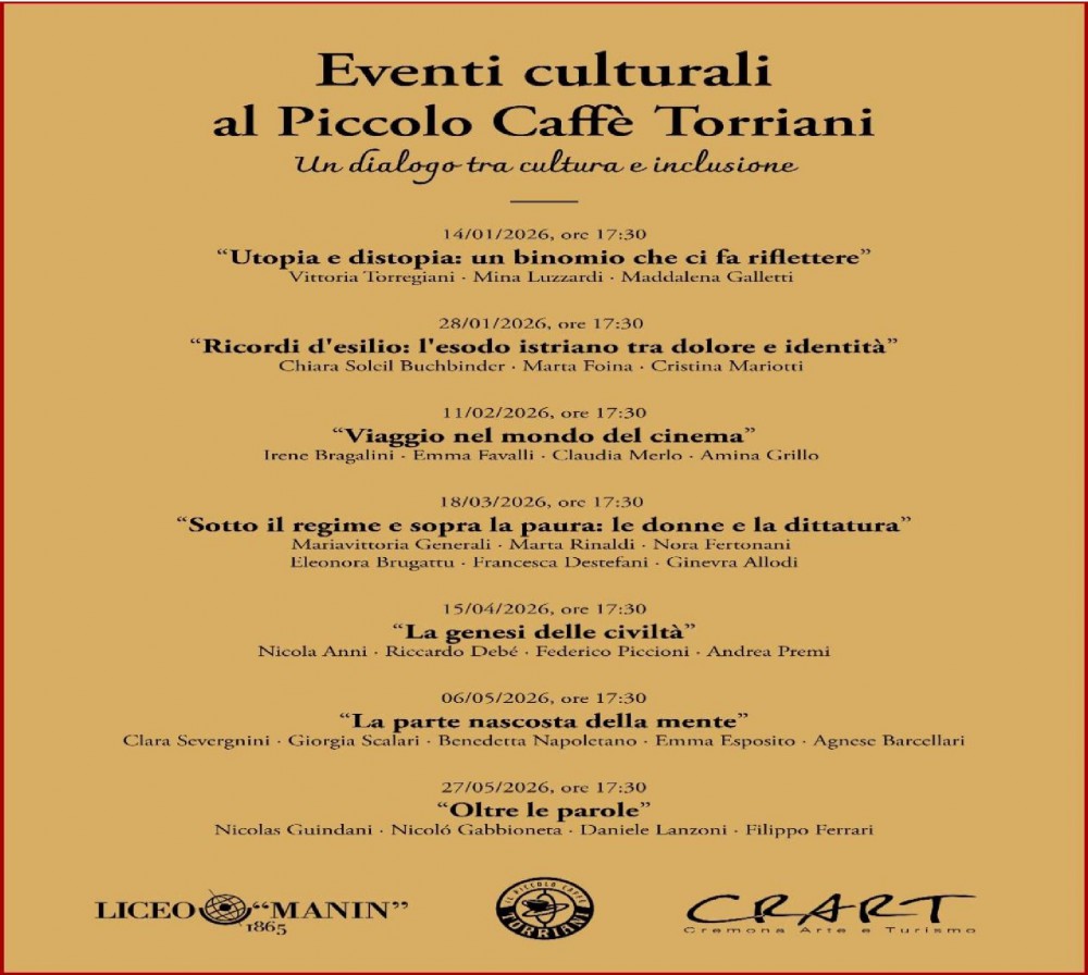 Per inciso, il calendario “un dialogo tra cultura e inclusione” avrà come location il Centro Torriani, l'ex mensa Eca di, appunto, via Torriani nel cuore del centro cittadino. Debitamente rifunzionalizzato, è diventato un fiore all'occhiello per la convivialità cittadina. E' gestito da una cooperativa sociale di giovani fragili.