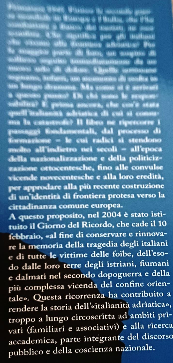 Con la Legge 30 marzo 2004 il Parlamento istituiva, il “giorno del ricordo”(volgarizzato, per praticità comunicativa, in un più comodo ma riduttivo “giorno delle foibe e dell'esodo dalle terre giuliano-dalmate”), nell'ovvio intento di sanare un vuoto, oseremmo dire, di memoria nazionale, e di rendere quanto più coesive l'interpretazione e la testimonianza riferita di quei drammatici avvenimenti che attraversarono una parte non trascurabile del ventesimo secolo
