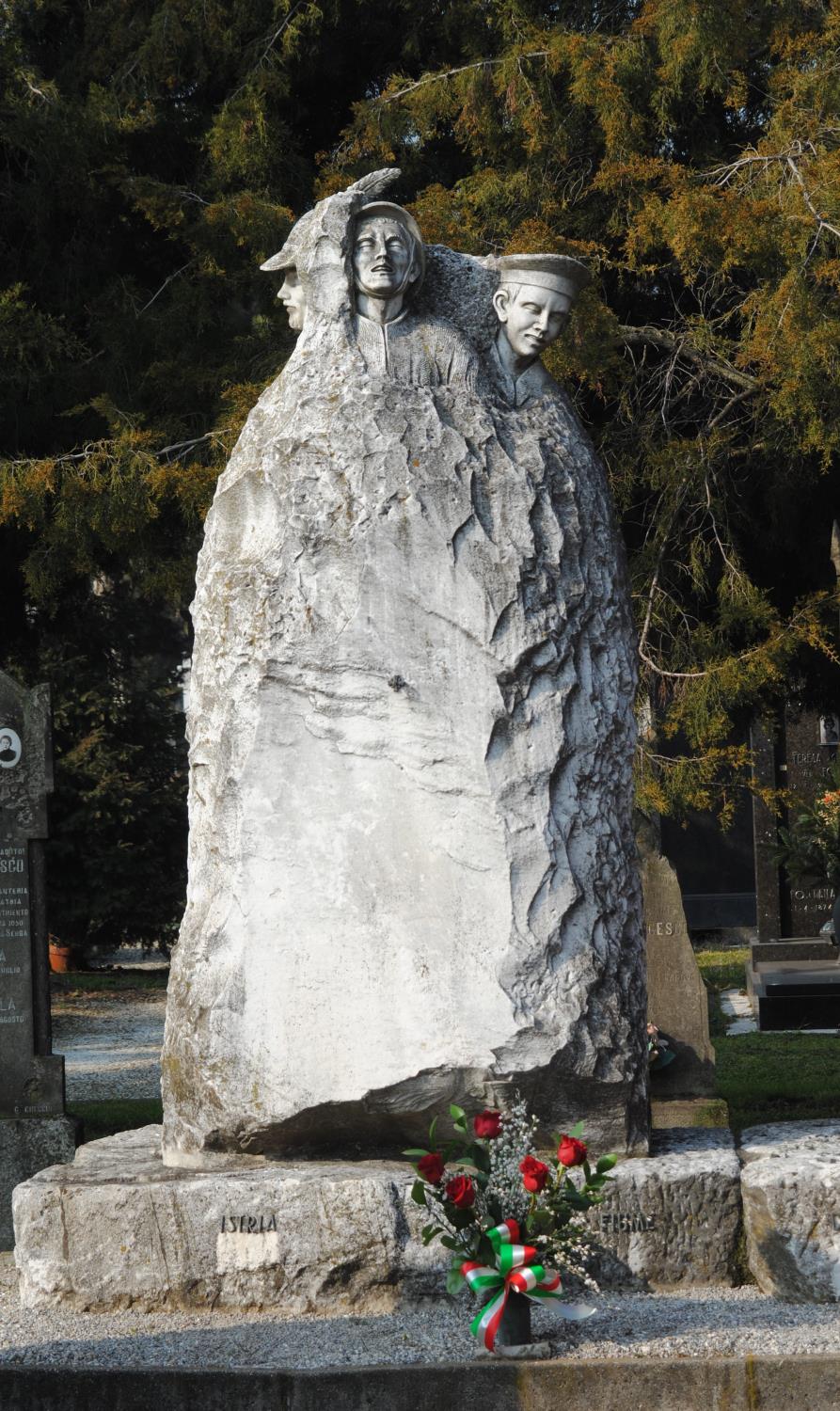 E col sacrificio Genti Giulie tradimenti della fede dei Caduti per la libertà in un secolo di lotte sempre ineguali e l'abbandono allo straniero della tomba di Nazario Sauro – Presidente Antonio Fonda Savio”