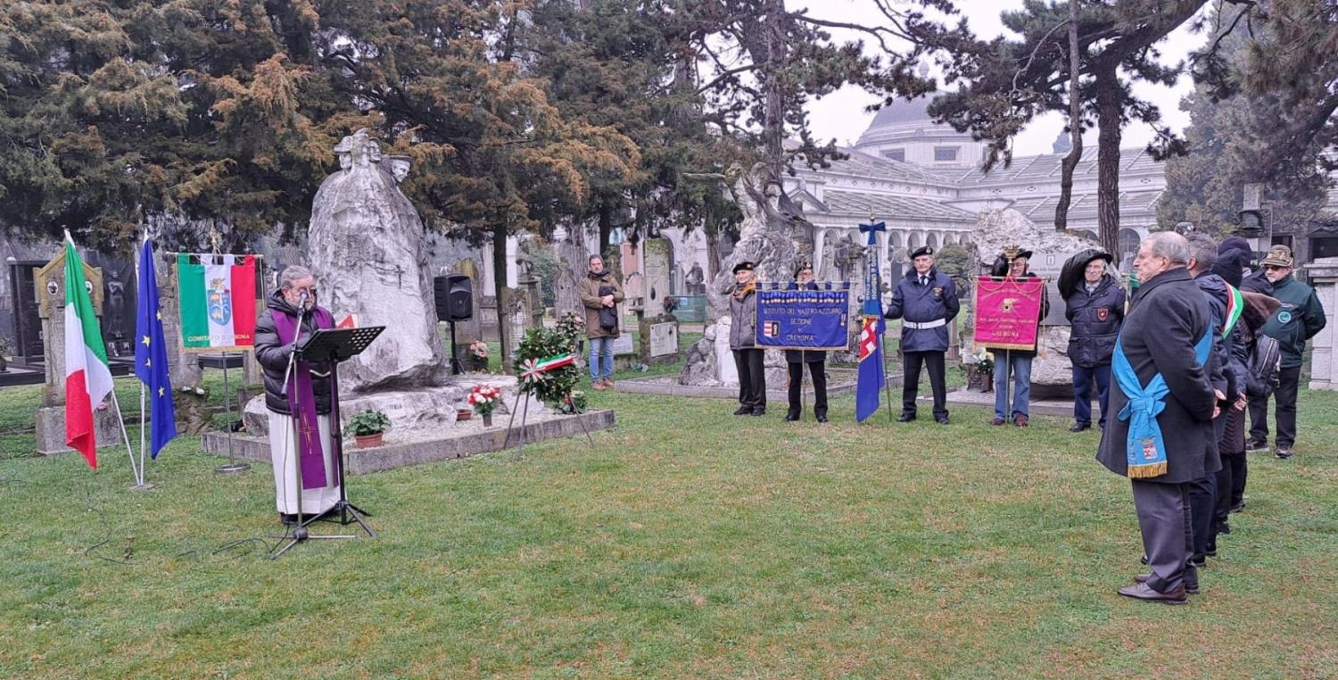 Il sindaco Andrea Virgilio, il consigliere in rappresentanza della Provincia, e Tiziano Bellini, per il Comitato di Cremona dell'Associazione Nazionale Venezia Giulia e Dalmazia, hanno deposto una corona di alloro al monumento ai Caduti Giuliano Dalmati di tutte le guerre, presenti le autorità civili e militari ed i rappresentanti delle Associazioni Combattentistiche e d'Arma, mentre il trombettiere del Complesso Bandistico “Città di Cremona” ha suonato “Il Silenzio”. Don Achille Bolli ha poi impartito la benedizione. Un mazzo di fiori è stato deposto davanti al cippo dedicato agli esuli deceduti a Cremona.