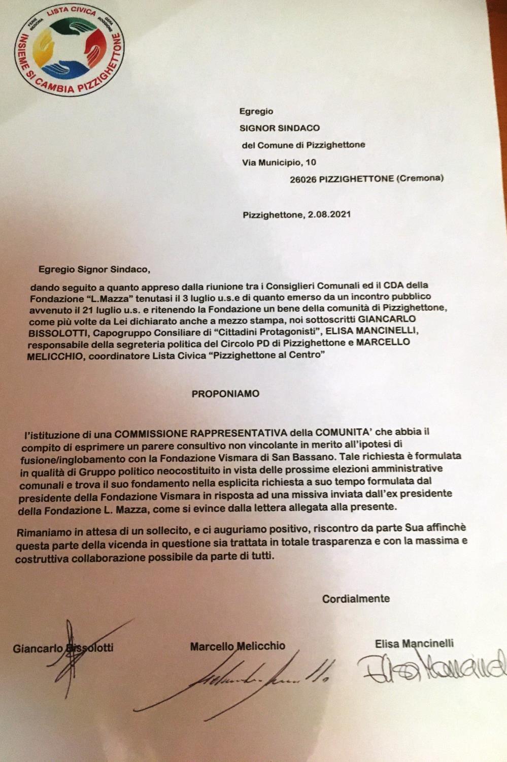 La costituzione di una Commissione Rappresentativa della Comunità (estromessa, anche a costo dell'avvenuta rottura della precedente maggioranza), munita del mandato di esprimere un parere consultivo non vincolante in merito all'ipotesi di fusione/inglobamento con la Fondazione Vismara rappresenta un tentativo di suturare la ferita provocata dall'arrogante autoreferenzialità di un anno fa della Giunta Moggi e di rimettere sul giusto binario la ricerca di un progetto condiviso, per salvare il salvabile. Di ciò che resta di una plurisecolare storia di afflato umanitario e di dedizione al bene comune dei pizzighettonesi.