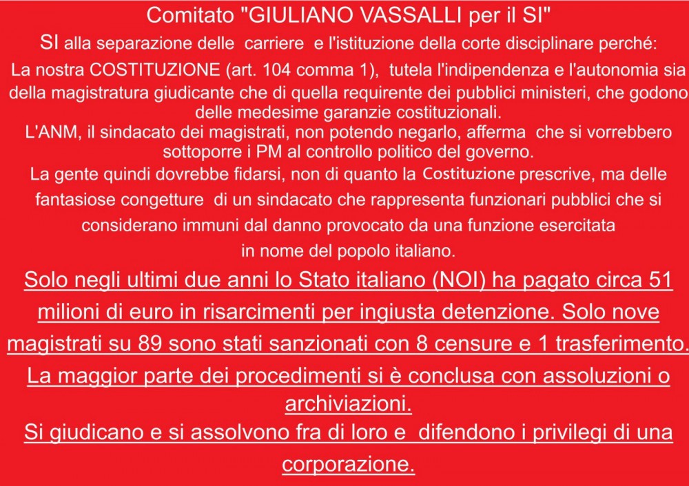 LE ADESIONI AL COMITATO NAZIONALE “GIULIANO VASSALLI” PER LA GIUSTIZIA GIUSTA E PER IL SI AL REFERENDUM SULLA SEPARAZIONE DELLE CARRIERE.