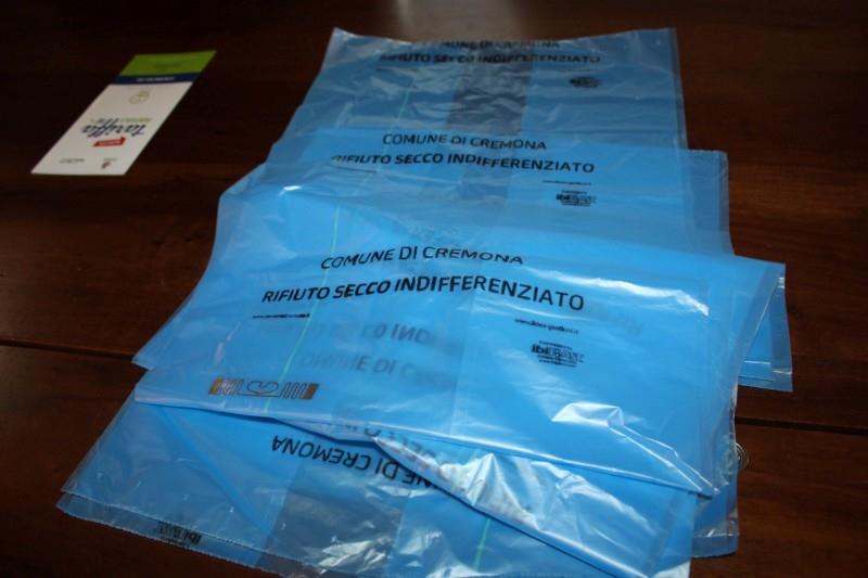 La nuova differenziata. Sacchi azzurri con tag ancora utilizzabili