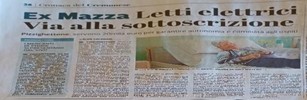 E' il caso dell'articolo a piena pagina, che recita “Ex Mazza – Letti elettrici – Via alla sottoscrizione”. In poche parole ci sono spunti tali da camparci (per chi volesse approfondire, per ragioni di chiarezza e per chi non volesse farsi prendere per il …lo)c'è proprio tanta roba. Ce ne siamo accorti (per quanto ne fossimo convinti ab origine) dal