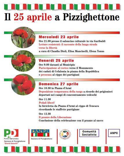 Nel Borgo sulle sponde dell'Adda la locandina degli eventi celebrativi, allestiti dall'Associazionismo Partigiano e dai movimenti e partiti dell'area della sinistra, ha avuto il suo partecipato vernissage mercoledì 23 presso la Sala Conferenze del Centro Culturale Comunale. Che ha sviluppato una interessante collateralismo culturale alla celebrazione storica del 25. Relatore dell'evento, dedicato a “letture resistenti: il racconto della lunga strada verso la libertà”, è stato il prof. Giancarlo Corada, storico e Presidente Provinciale dell'ANPI. Il quale, preconizzando i percorsi celebrativi alle viste e, soprattutto, inserendosi nel clima non esattamente edificante delineato dall'editto della sobrietà, ha ammonito che non è mai avvenuta una vera defascistizzazione. In ogni caso, specie in questo contesto, si deve evitare di ridurre il 25 aprile a mere cerimonie davanti ai monumenti, portando solo fiori”.