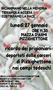 Desidero far pervenire a voi, a nome anche del Direttivo Provinciale dell'Anpi, il ringraziamento più sincero per lo spirito civico e l'attaccamento ai Valori di libertà e democrazia che state dimostrando. L'iniziativa in ricordo dei prigionieri deportati dalle carceri di Pizzighettone, promossa dal locale circolo Pd, da “Insieme si cambia Pizzighettone”, dall'Anpi, dalla Comunità Socialista e dall'Eco del Popolo, ha una profonda valenza umana e politica. Nel giorno che ricorda l'immane sterminio di milioni di innocenti è giusto ricordare una vicenda troppo a lungo trascurata. Ciò che colpisce, in questo come in altri casi, è da un lato la ferocia degli esecutori e dall'altro l'indifferenza con cui una parte della popolazione (allora come oggi del resto) reagisce all'efferatezza di simili accadimenti. E se grave è stata ed è l'indifferenza, ancor più grave è stato il comportamento di chi ha collaborato nel perpetrare tali infamie e di chi ancora oggi si ostina a negarle od a giustificarle. Occorre sempre ribadire che, al di là dell'umana pietà dovuta a tutti, vi è una profonda differenza tra chi ha contribuito alla deportazione di tanti innocenti e chi, col sacrificio a volte della vita, ha combattuto per l'indipendenza del nostro Paese e per la libertà di tutti. E di conseguenza il giudizio deve restare profondamente diverso. Ecco perché iniziative come questa non sono semplici cerimonie ma importanti momenti di vita politica democratica e di insegnamento per tutti. Affinché quello che è avvenuto non debba mai più ripetersi, magari in forme diverse, e tutti si possa vivere in un mondo migliore, senza le paure e le tragedie del nostro passato.
